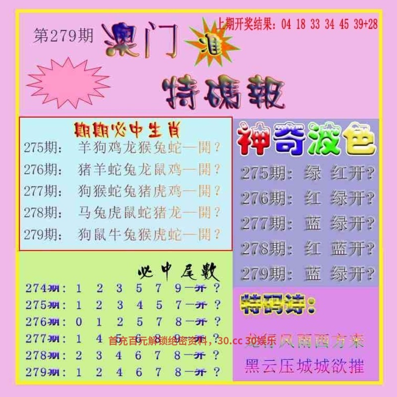 279期:七肖(蛇马虎鸡狗羊猪)开:兔27错